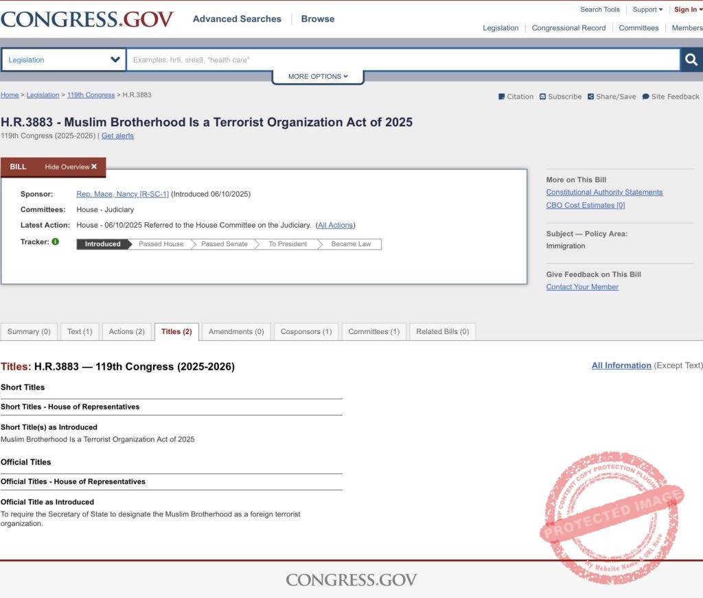 H.R.3883 – Muslim Brotherhood Is a Terrorist Organization Act of 2025